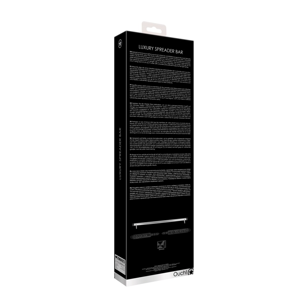 Spread some love as well as your lover’s limbs for uninhibited access to the most intimate areas during erotic play! This sturdy metal spreader bar comes with 2 attached ankle cuffs, made from comfortable neoprene and patent vinyl with a diamond pattern. Product features: